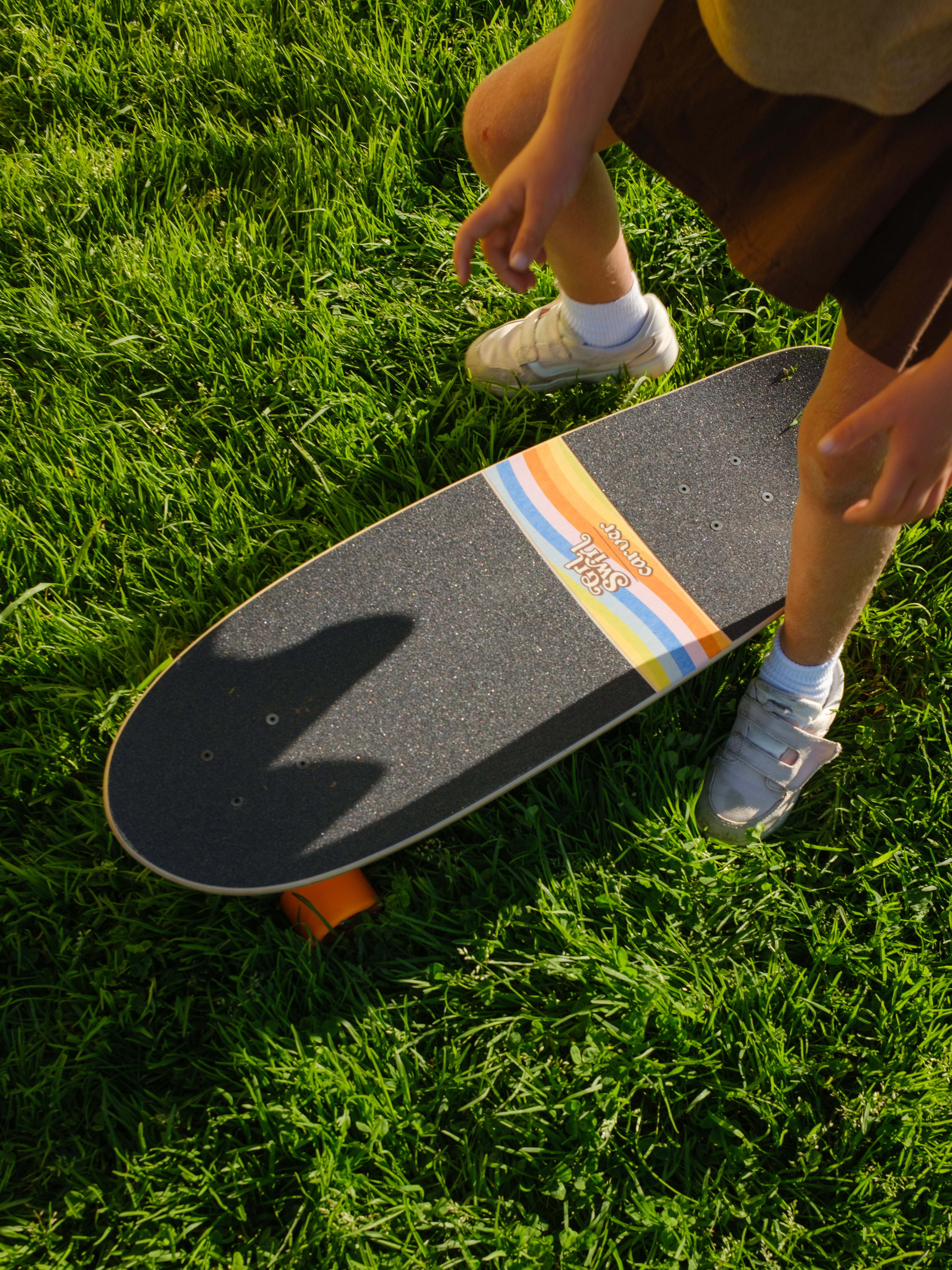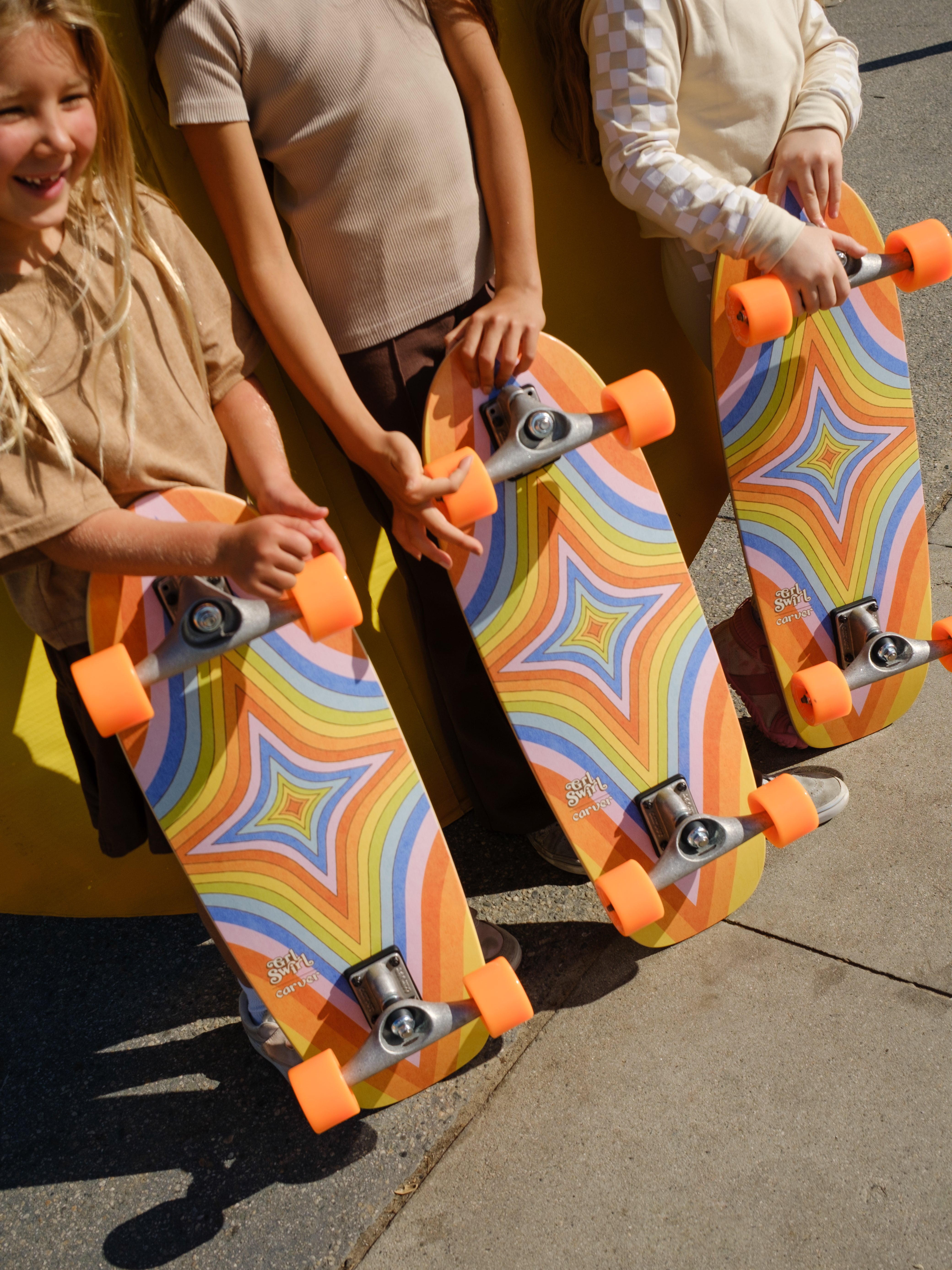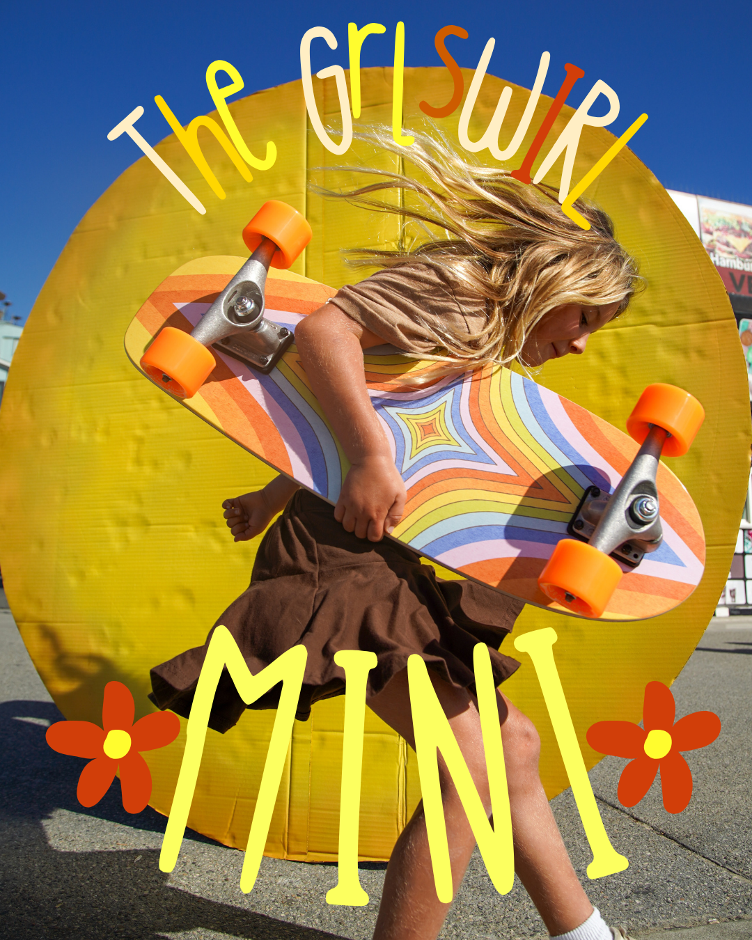 Meet the Mini Swirl, our dream board for the next generation of skaters. It’s our smallest, lightest, easiest-to-control board — made so young kids can actually ride instead of wrestle with their setup. The board also is super fun for adults looking for a smaller, whip-ier board!