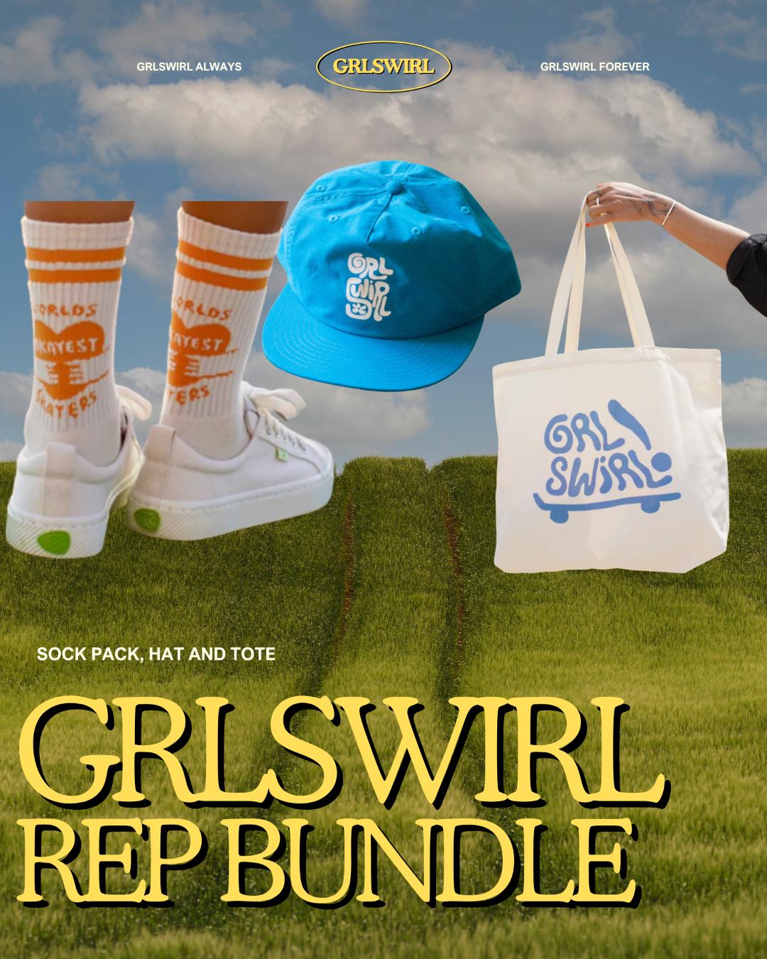 The ultimate gift for skaters and GRLSWIRL Reps! Save 30% and snag a pair of GRLSWIRL socks, The Salty Hat, and our Tote.